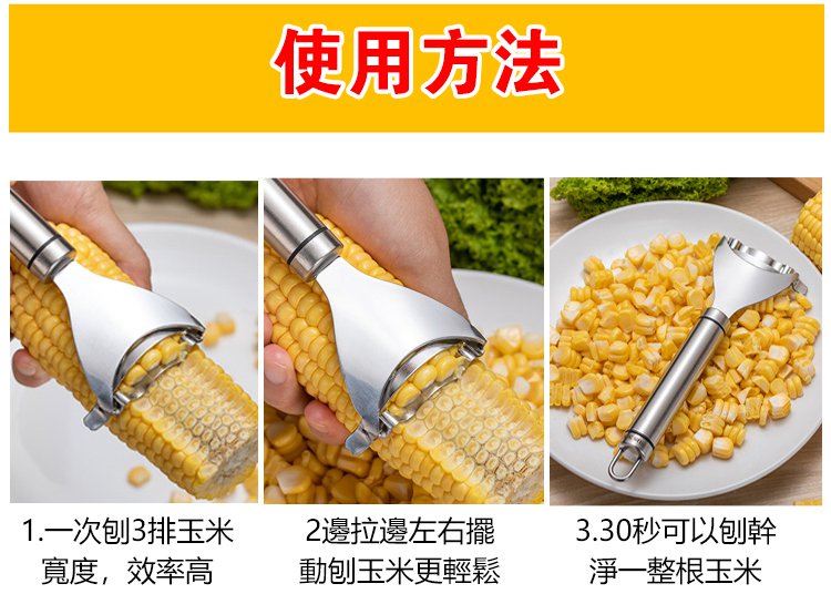 2分鐘前火爆熱賣 不銹鋼玉米刨粒器 鋒利鋸齒,剝落乾淨,絕不浪費 剝玉米,胡蘿蔔皮 土豆皮,304不鏽鋼材質,易於清洗 - 【狂殺特賣】9入組-NT$1380
