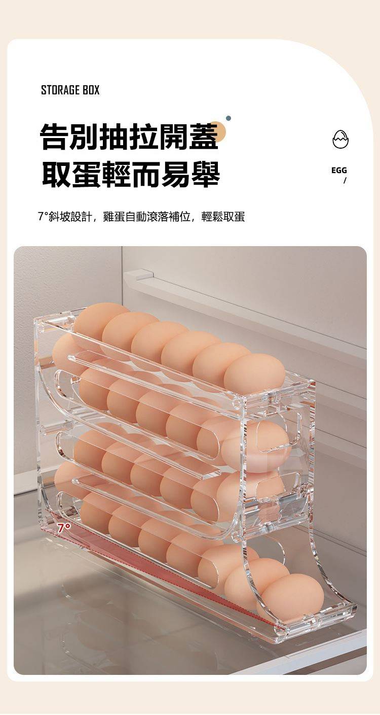 2分鐘前自動滾蛋式雞蛋收納盒 - 7入组(可放210個雞蛋)NT$1498